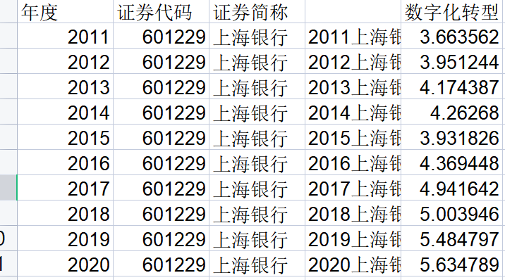 “数字化转型”的词频来刻画其转型程度,具有可行性和科学性。具体而言,借助Python 爬虫功能对中国上市银行年度报表进行爬取,并采用Jieba分词模块对银行“数字化转型”相关的关键词进行分词与统计。所得数据已经加1取对数。