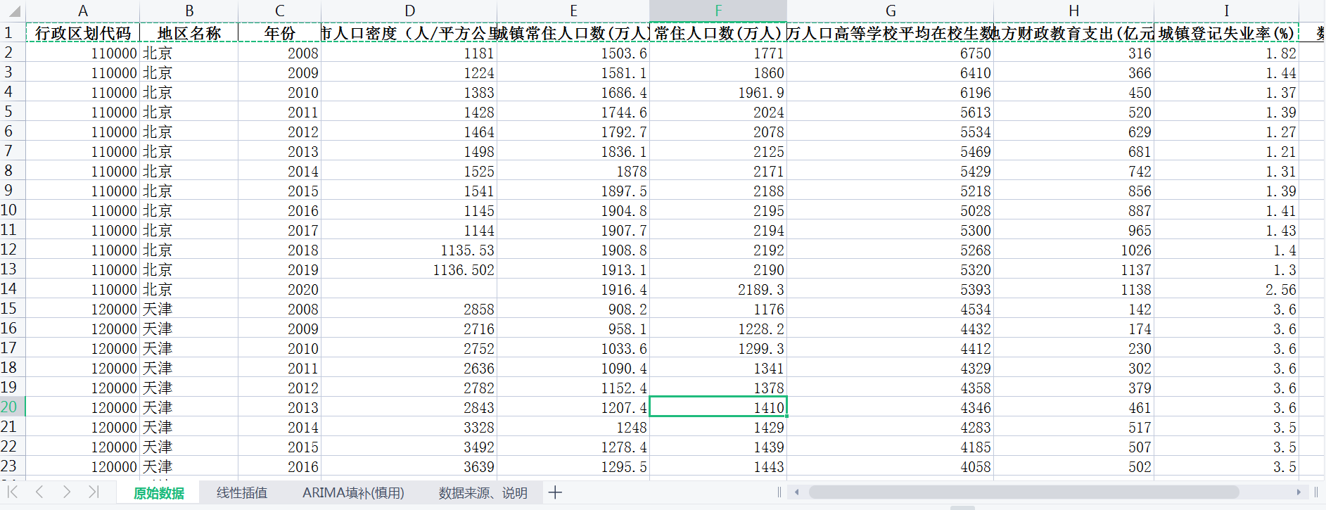 数据整理:内含原始版本、线性插值、ARIMA填补版本