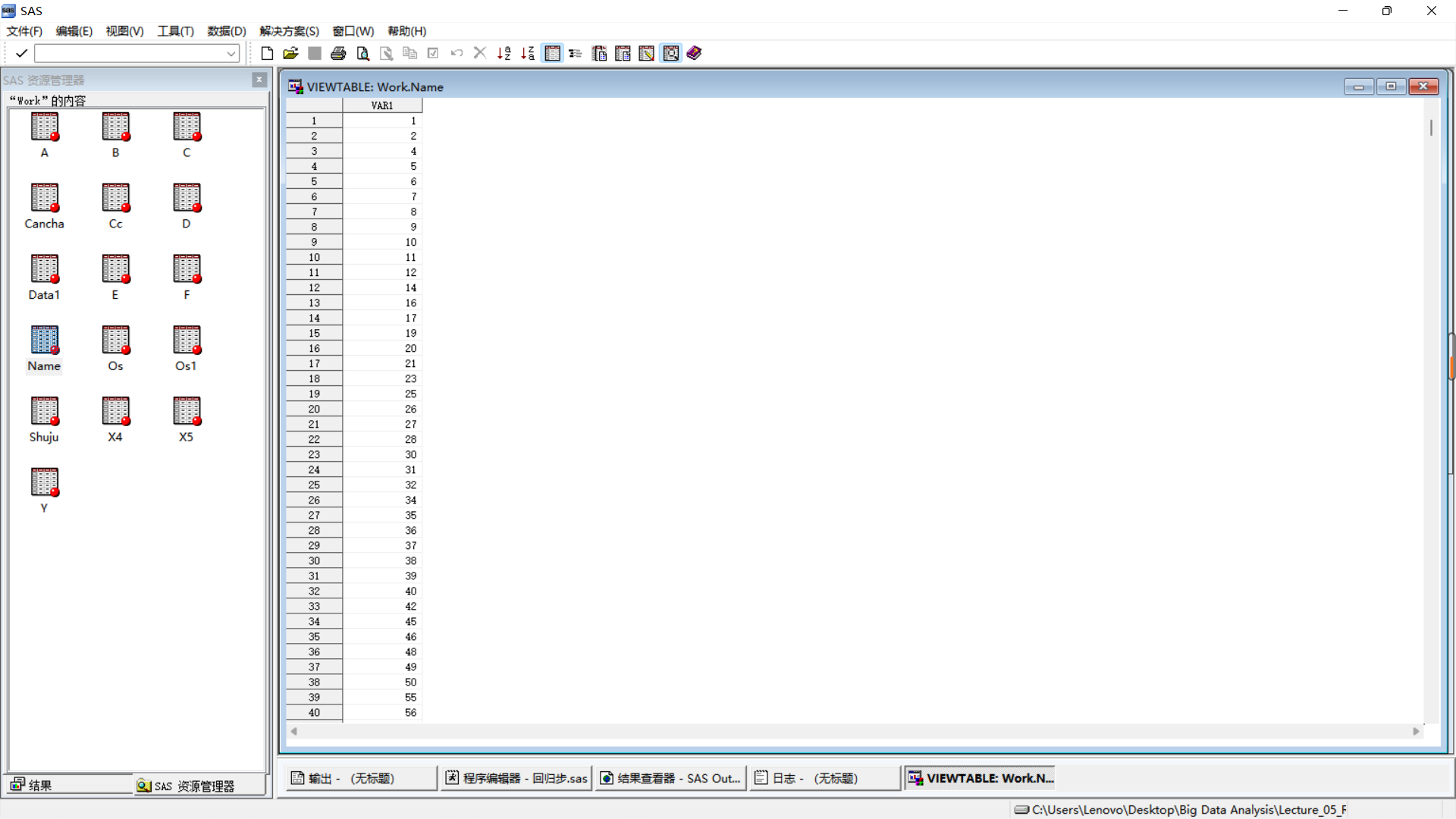 各位,sas中data步将某一变量值定义为一个数组;如下图将变量var1的观测值定义为一个数组name,即数组name(3)就等于4