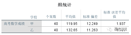题目:甲、乙两所学校各40名高三学生的高考数学成绩。试用独立样本T检验方法研究两所学校被调查的高三学生的高考数学成绩之间有无明显的差别。