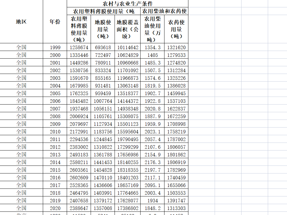 指标包括:农用塑料薄膜使用量、地膜使用量、地膜覆盖面积、 农用柴油使用量、农药使用量