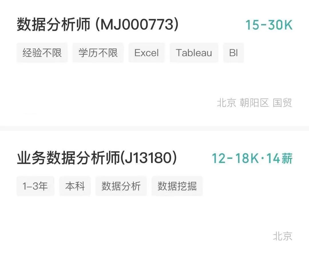 这是在某招聘网站截取的数据分析师就业薪资,可以看到对于刚毕业的大学生,数据分析师薪资水平可以达到10K以上。