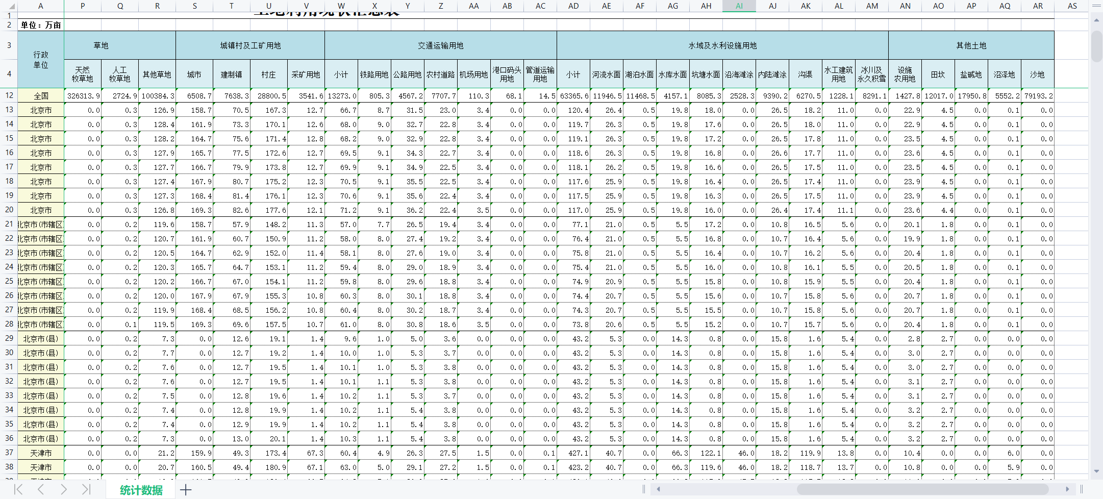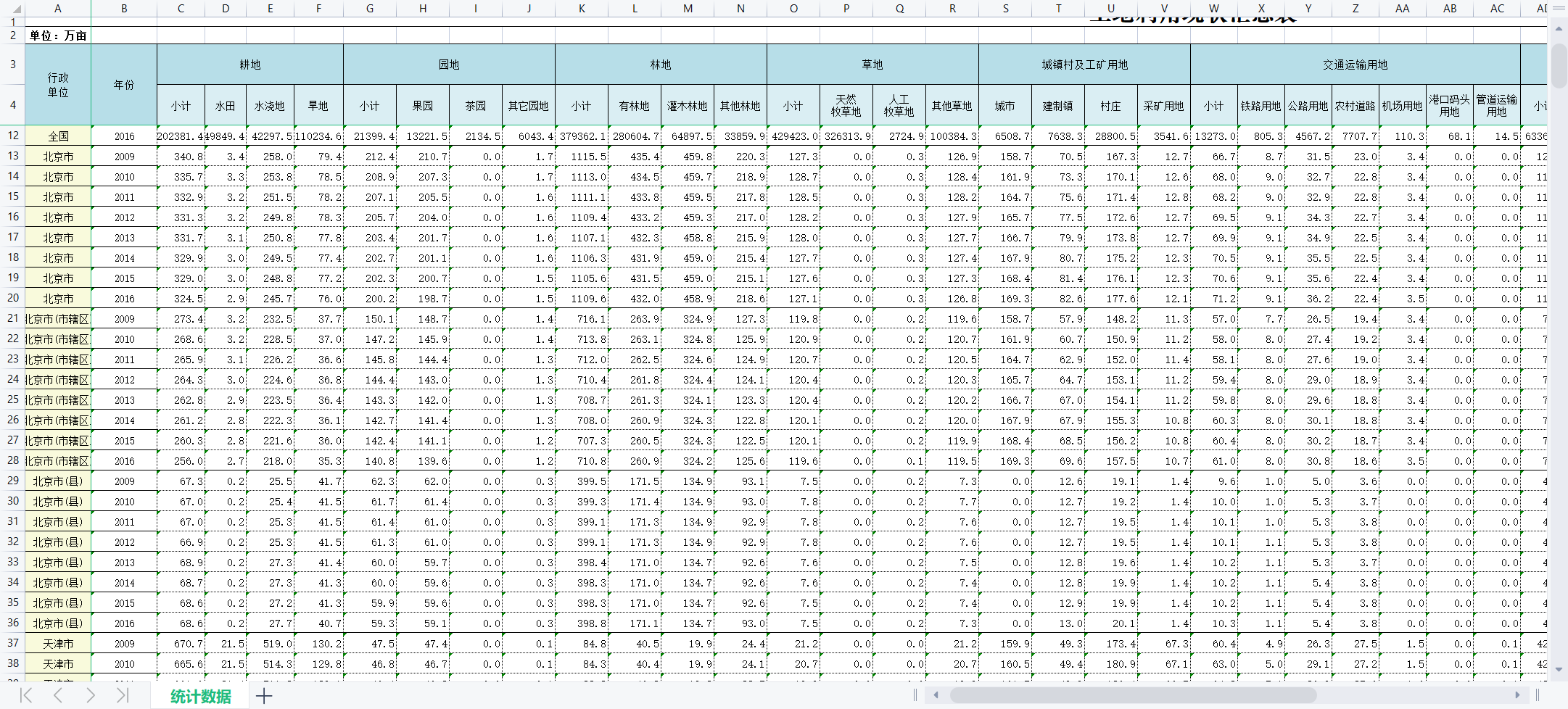 2009-2016年全国及300多个地级市土地利用类型面板数据