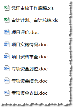专项审计工作底稿:凭证审计,项目评价、项目实施、项目资料、项目资金到位等审计