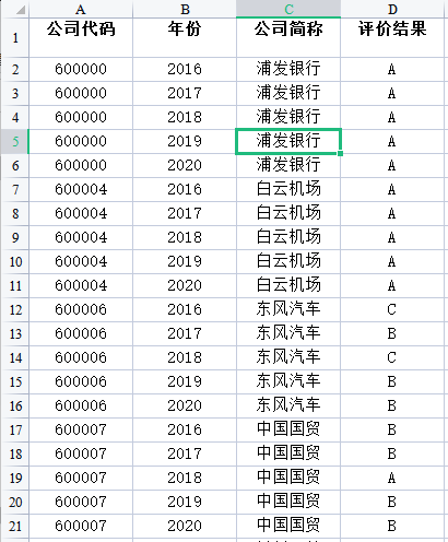 2016-2020年上交所上市公司信息披露工作评价结果.rar
