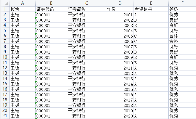 2001-2020年深交所上市公司信息披露工作评价结果.rar