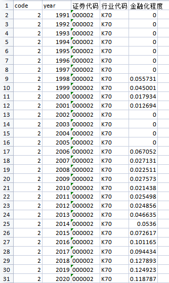 1990-2020年金融化程度(方法一,stata计算,新会计准则)