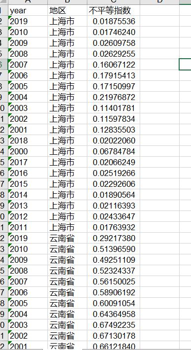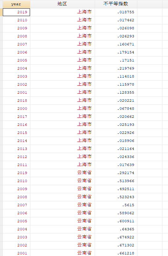 ②泰尔指数运用的一个好处就在于公式中总存在同一类型指标的比值,因而消除了量纲的影响,我们进行计算时不需要进行价格平减。