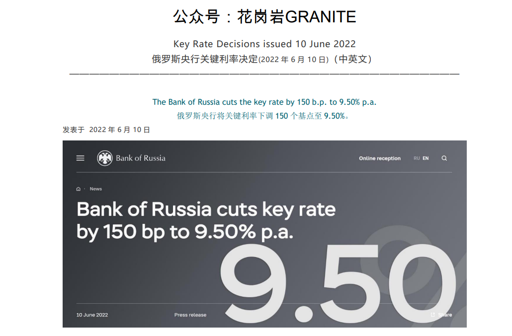 俄罗斯央行关键利率决定(2022年6月10日)(中英文)