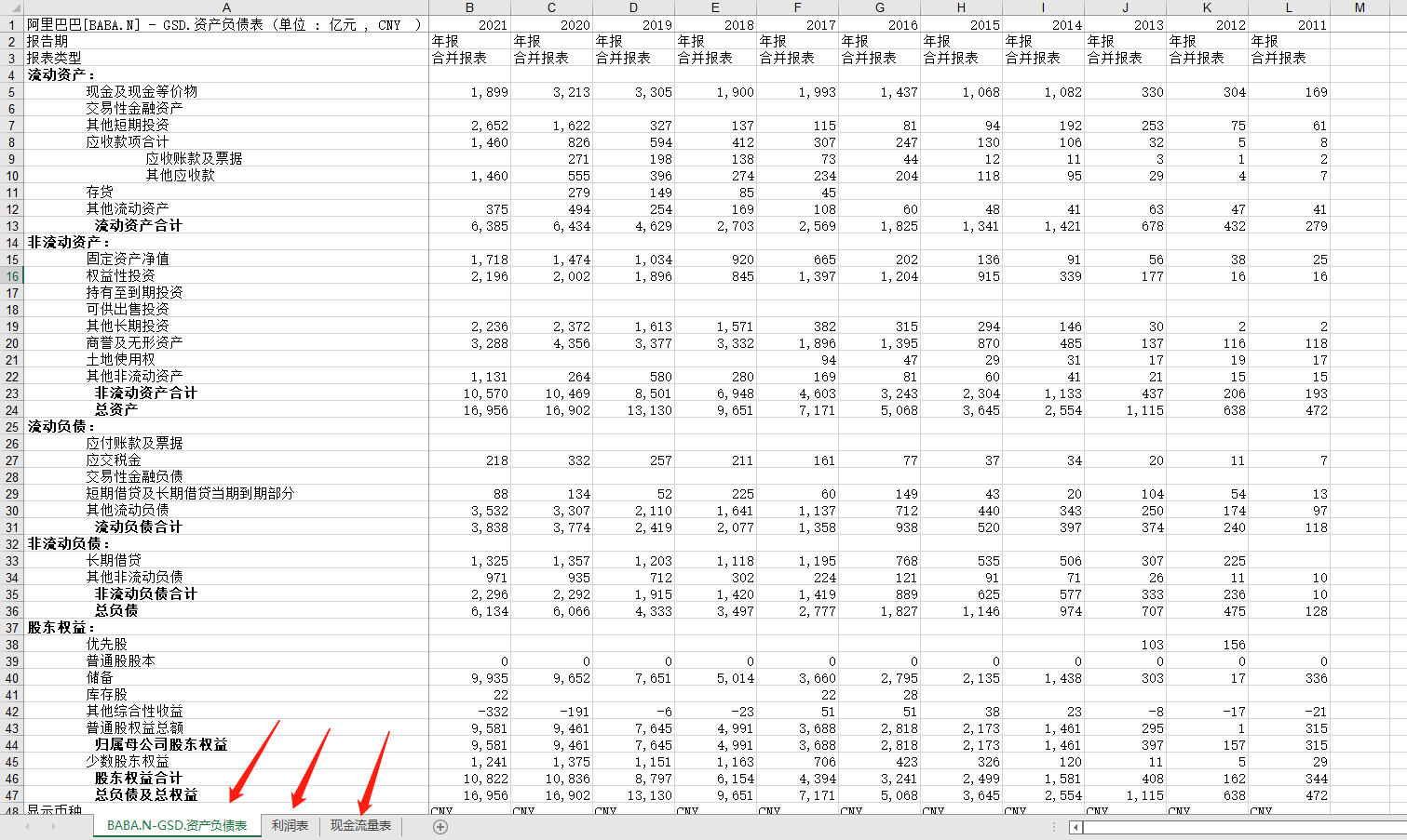 贝壳 2017-2021 三大财务报表.xlsx