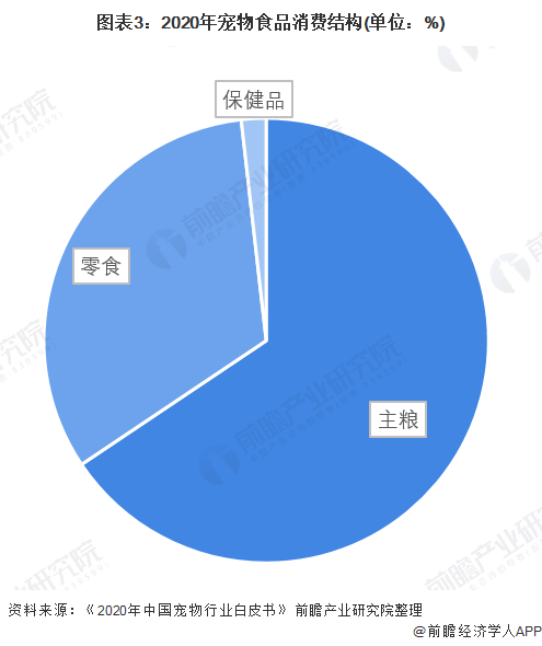从2020年宠物食品的消费结构看,宠物保健品的消费占比偏低,占宠物总食品支出的比例不足2%,宠物保健品的消费潜力仍有待挖掘。
