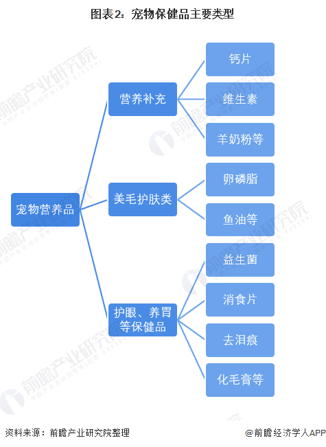 目前,宠物保健品类型丰富多样,主要包括营养补充类产品、美毛护肤类产品以及护眼、养胃等保健品等。能够满足不同年龄、长期挑食、患有疾病等不同情况的宠物需求。
