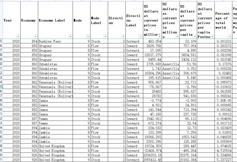 2020年--1970年全球外商直接投资和对外直接投资数据