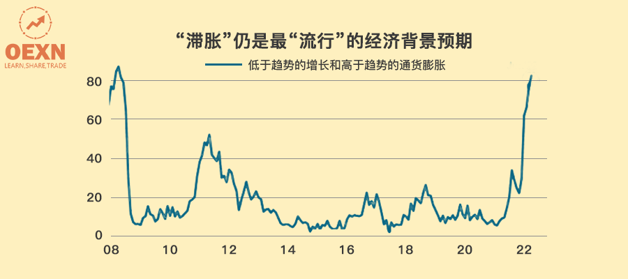 OEXN报道:上周美国CPI数据超预期,再度刷新1981年12月以来的最大涨幅,即便剔除波动较大的能源和食品,5月核心CPI也较上个月上涨了0.6%,这意味着通胀还未见顶,市场预期的通胀预期落空,也加剧了市场对美联储加息的担忧,同时投资者对滞胀的担忧也达到2008年以来的最高水平,其乐观情绪也已经降低至历史最低。