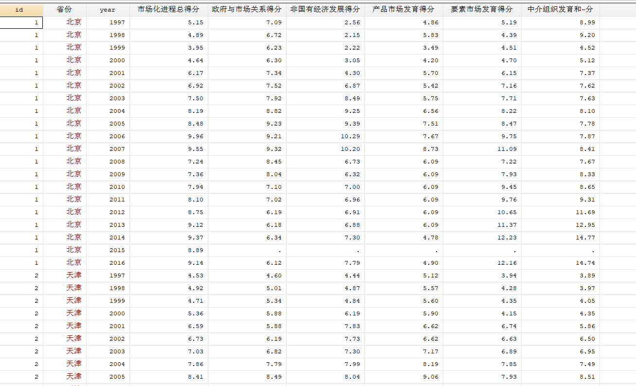 早起吃了晚饭 发表于 2022-6-17 19:24 1997-2019年樊纲市场化指数含stata do文档和原始数据 具体指标包括:包含总指标以及各个分项:ZF与市场关 ...