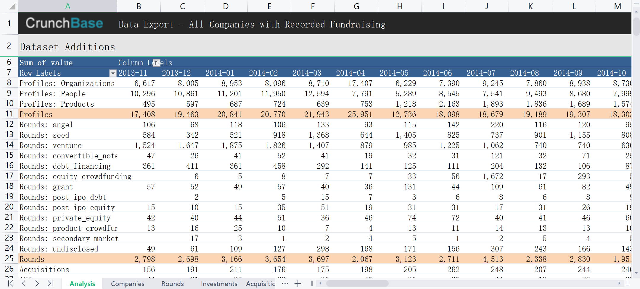 包含该些创业公司国别以及创立时间等多个指标,样本量高达11W+