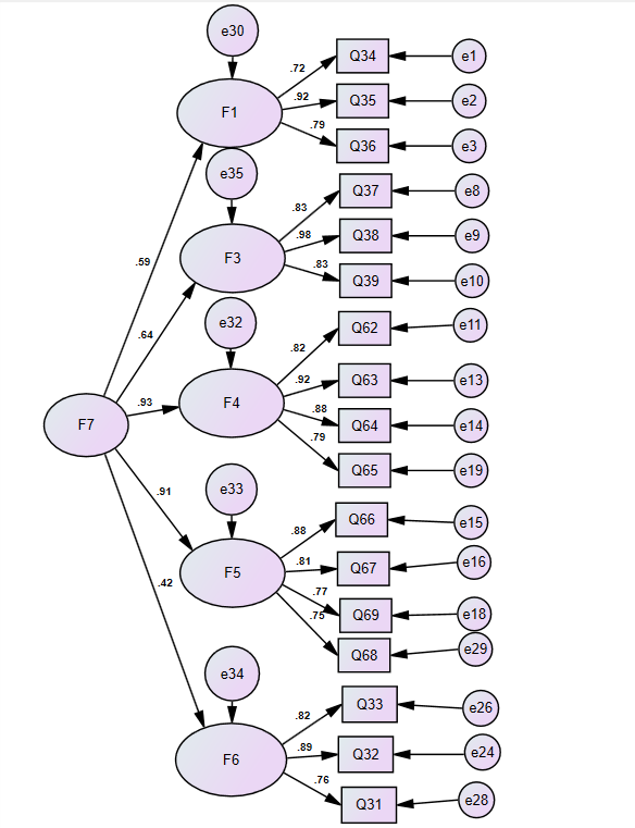 二阶验证性因子分析中有一个一阶潜变量的因素负荷量大于0.95
