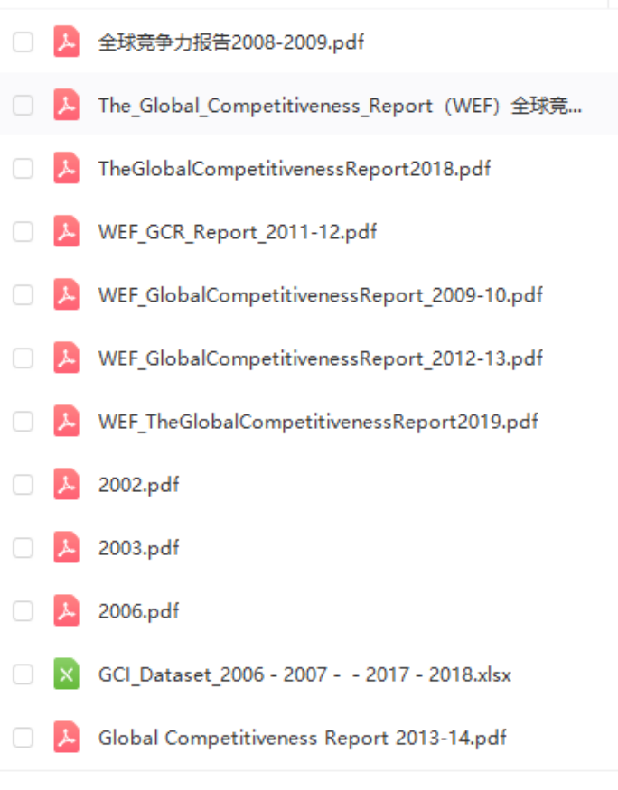 全球竞争力报告PDF2001-2019年&Excel版数据2007-2018年