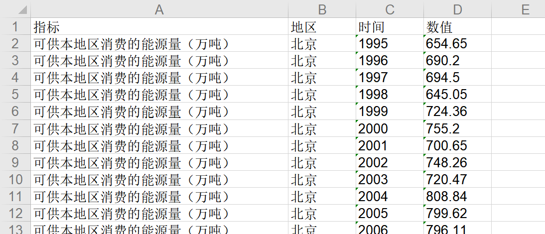 指标包括:加工转换投入(-)产出(+)量(万吨)、可供本地区消费的能源量(万吨)、损失量(万吨)、原油平衡差额(万吨、原油消费量(万吨)、终端消费量(万吨)
