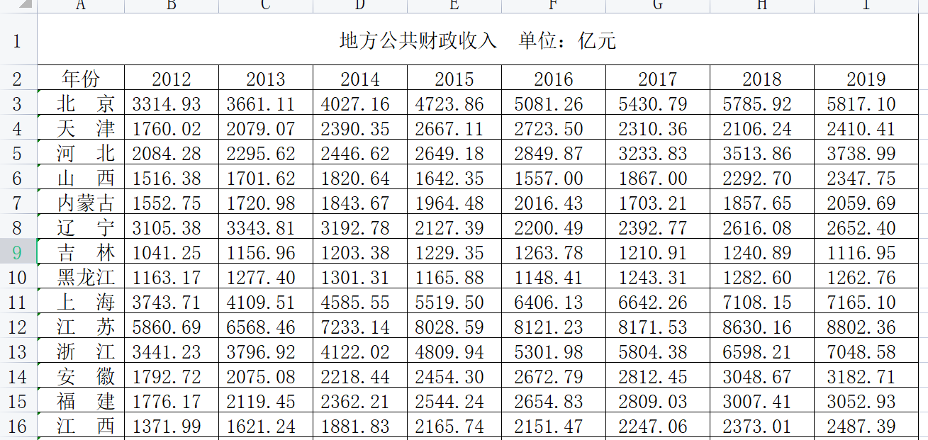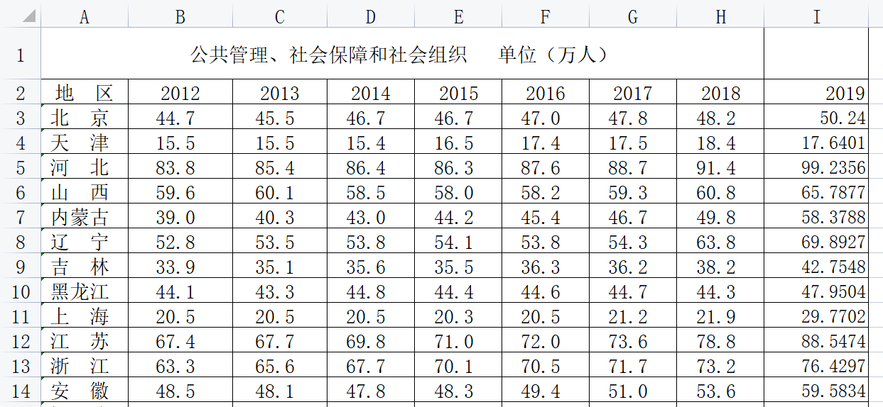 Excel面板!2012—2019年各省公共财政收入与公职人员数量(新)