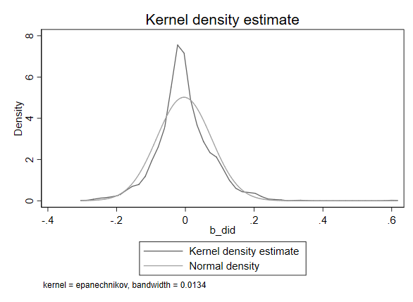安慰剂检验这个结果算通过了么,1000次重复随机提取处理组和对照组