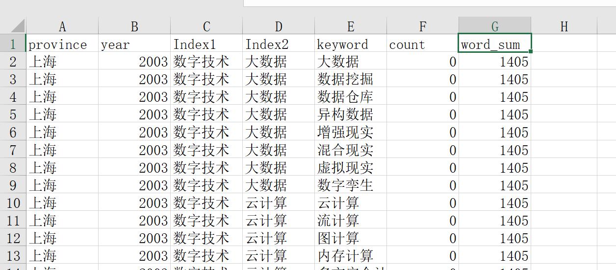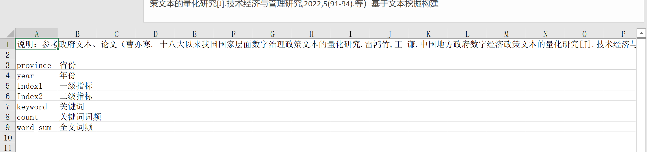 省份、年份、一级指标、二级指标、关键词、关键词频、全文词频