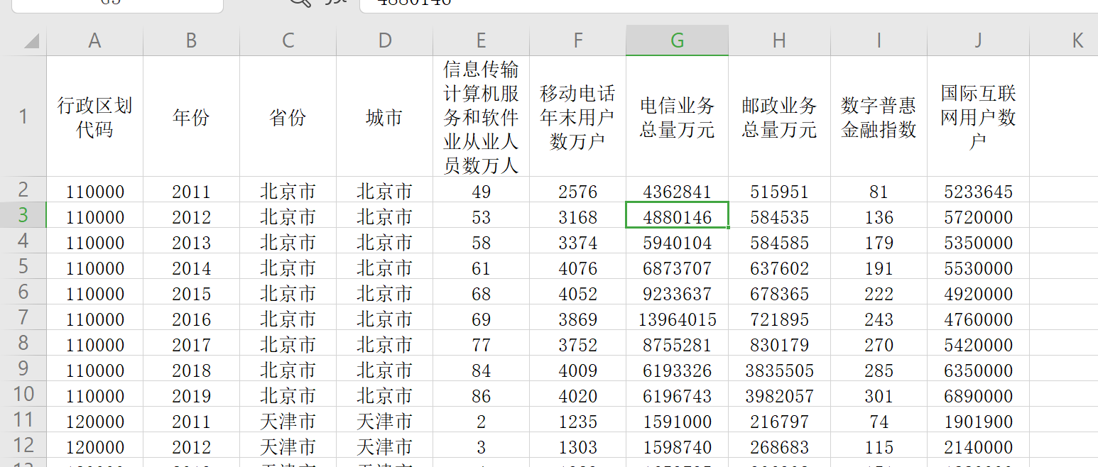 地级市电信+邮电+互联网数据2011-2019.xlsx