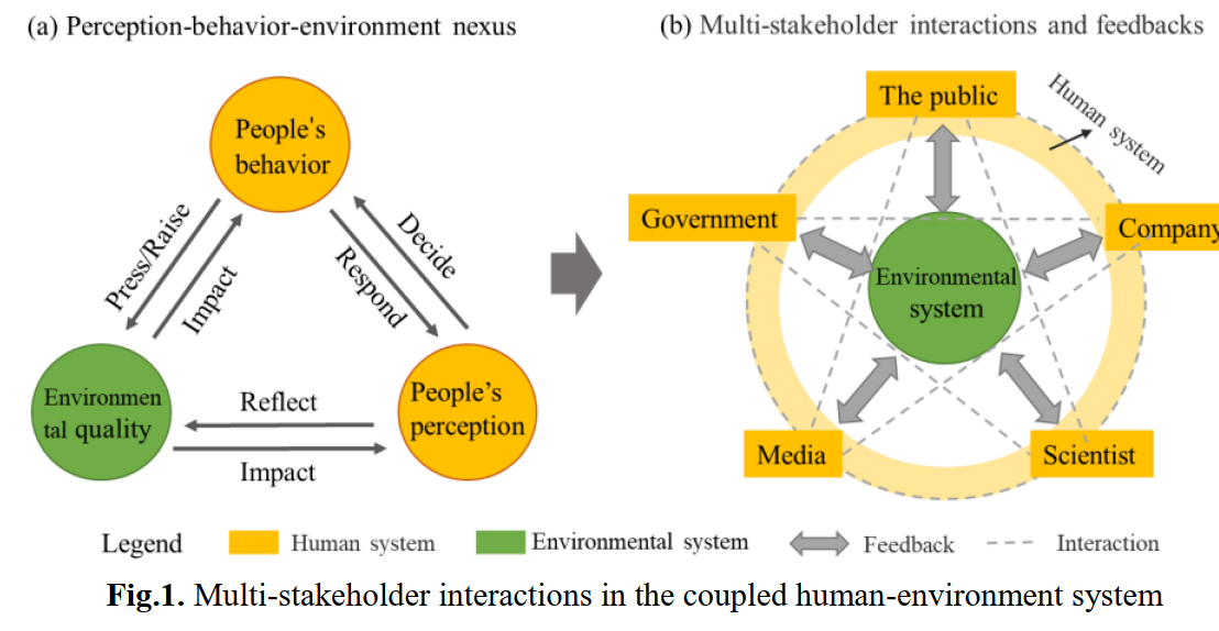 从人-环境耦合系统的角度提出了感知-行为-环境的反馈环,测度了五类利益相关者(公众、ZF、媒体、企业和科学家)在不同省份的环境感知差异,并将主观感知和实际污染情况进行比较。