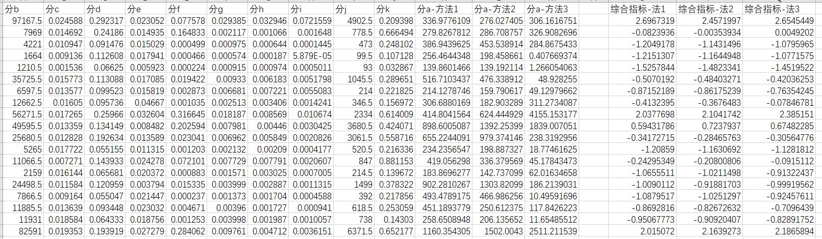 就是想请问一下大家,为什么分项指标的衡量方式改变之后,主成分分析法的结果却没有太大的变化呢?以及主成分分析法的结果都比较小,是因为标准化吗?谢谢各位!