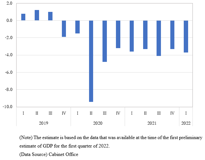 图3:日本经济产出缺口变化趋势(占潜在GDP比重,%)