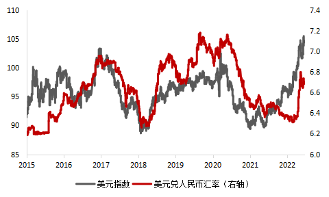 图1:美元兑人民币汇率和美元指数变动趋势