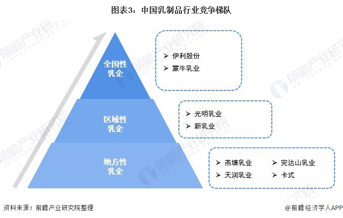 根据乳制品企业的经营范围、渠道覆盖程度及规模,可将我国乳制品企业分为三大梯队: