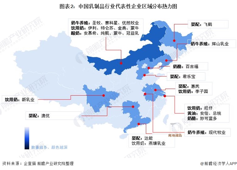 在中国乳制品行业的上市公司中,伊利股份和蒙牛股份业务布局最广,布局区域覆盖全国。其他上市企业业务布局大部分集中于特定区域。