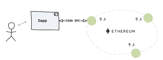 如果我们希望构造一个去中心化应用(DApp),除了智能合约的开发, 通常还需要使用其他开发语言为用户提供操作智能合约的用户接口,例如 开发一个网页、一个手机App或者一个桌面应用。这些代码都需要与以太坊 进行交互。 以太坊规定了每个节点需要实现的JSON RPC API 应用开发接口,该接口是传输无关的,应用程序可以通过HTTP、websocket或IPC等多种 通信机制来使用该接口协议操作以太坊节点: