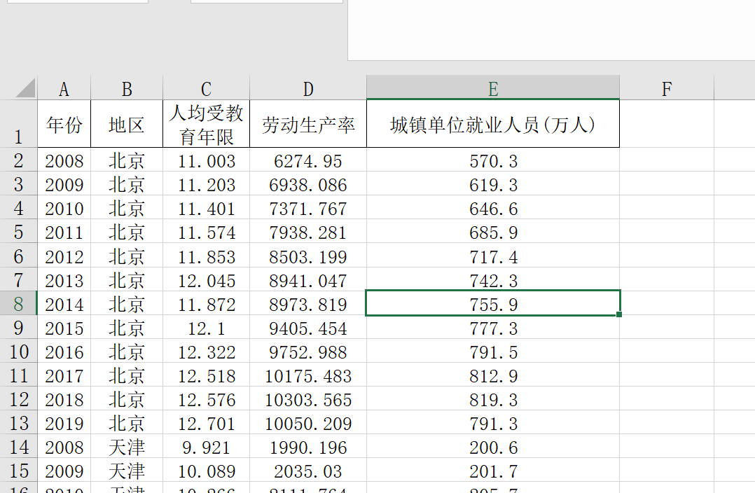 人均受教育年限、劳动生产率、城镇单位就业人员(万人)