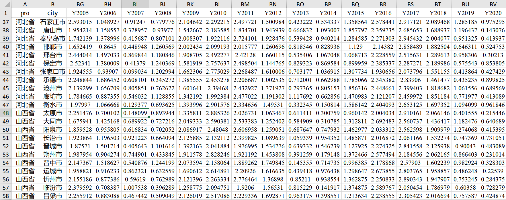 全要素生产率的测算方法主要分为非参数法和参数法两类。非参数法中以DEA、Malmquist指数方法为主,虽然比较经典,但不能对前沿面的适用性进行检验,且没有考虑随机因素对测量结果的影响,而参数法能够克服上述缺点。参数法又可分为索洛残差法、隐性变量法和随机前沿生产函数法(SFA)。索洛残差法建立在市场是完全竞争的、技术进步是希克斯中性的且规模报酬不变的假设基础之上,并将C-D生产函数所得的残差当作全要素生产率。但这些严格的假设条件往往与现实情况不符;并且,全要素生产率仅被解释为技术进步的影响,没有考虑规模经济和效率改善等因素;此外,该法没有剔除测算误差对全要素生产率的影响,因此会导致技术进步的高估。隐性变量法虽然利用状态空间将全要素生产率从测量误差中分离出来,但是其理论仍然建立在C-D生产函数和规模报酬不变等相关假设基础之上,因而针对索洛残差法的部分问题还是没有解决。SFA将生产函数的形式设定为超越对数生产函数,这种函数形式比C-D函数更具灵活性,同时放松了规模报酬不变和技术中性的假定,允许劳动力和资本非充分利用的情况。此外,SFA还考虑了随机误差项对全要素生产率的影响。这份数据参考Battese和Coelli的模型,采用最新的SFA方法进行计算,最大限度地确保计算结果的精确性,可以为各类研究提供可靠的分析依据。欢迎下载!