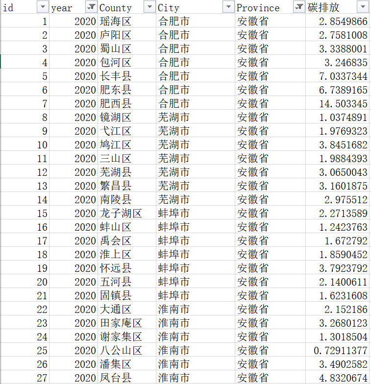 1997-2020年(其中2018-2020年为插值法估计)2735个县市区碳排放