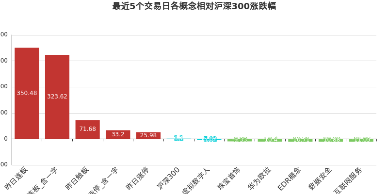 最近五个交易日虚拟数字人下跌5.02%,沪深300指数上涨1.1%,【虚拟数字人】概念指数走势比沪深300指数走势相对弱势。涨跌幅在454个概念板块中居于第393位。涨幅居前:昨日连板、昨日连板_含一字、昨日触板、昨日涨停_含一字、昨日涨停;跌幅居前:互联网服务、数据安全、EDR概念、华为欧拉、珠宝首饰。