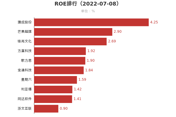 ROE排名TOP5上市公司:捷成股份、芒果超媒、锋尚文化、方直科技、歌力思