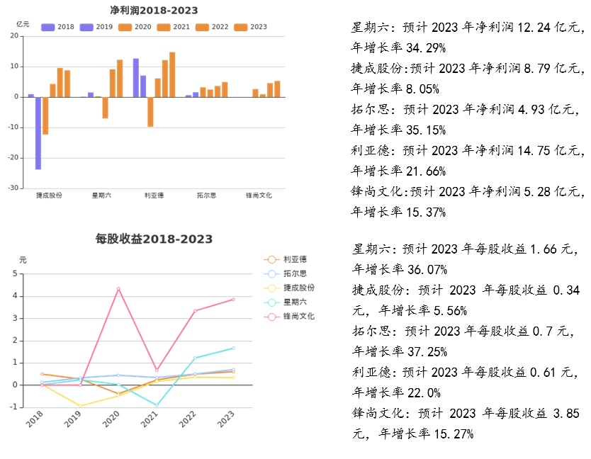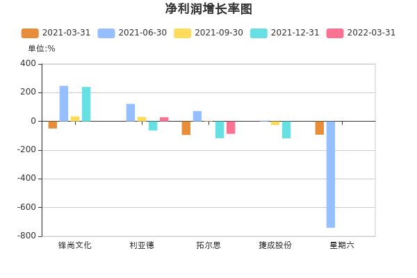 净利润增长率是指企业当期净利润比上期净利润的增长幅度,指标值越大代表企业盈利增长能力越强。本期净利润增长率排序(由高到低):利亚德、捷成股份、锋尚文化、星期六、拓尔思。