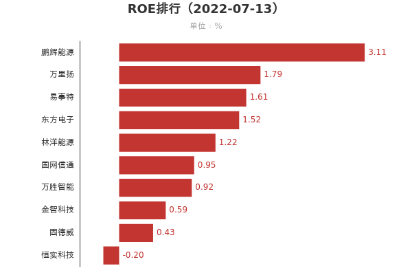 ROE排名TOP5上市公司:鹏辉能源、万里扬、易事特、东方电子、林洋能源。