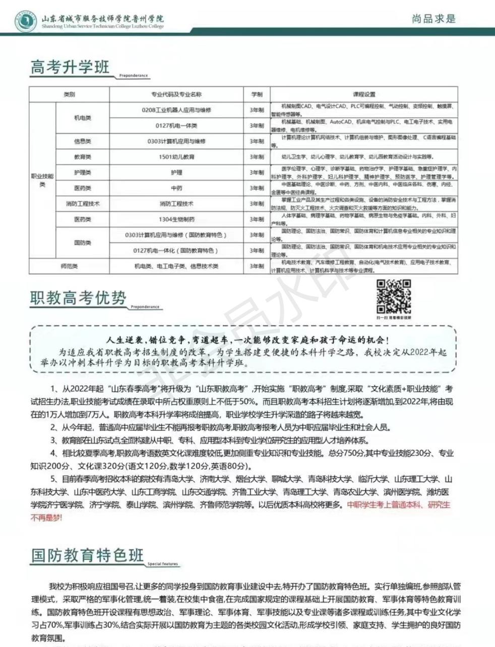 山东城市服务技师学院鲁州学院2022年秋季招生简章