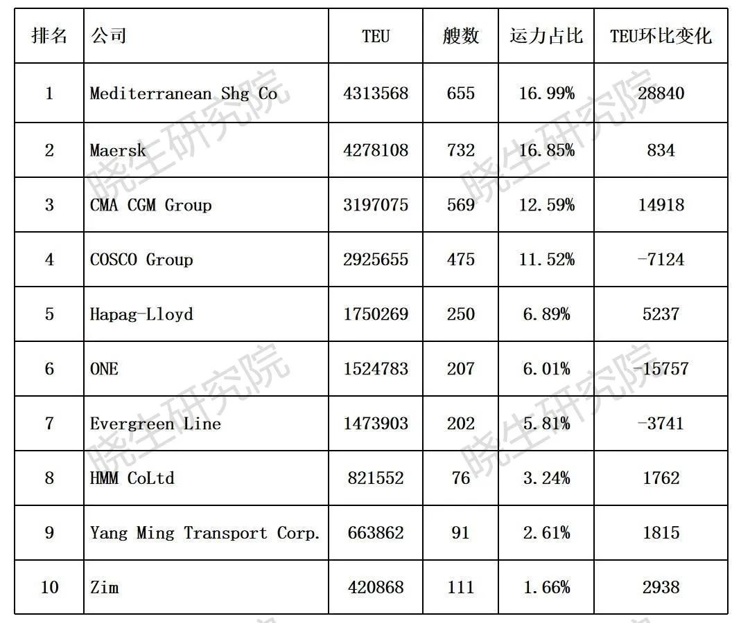 数据来源:Alphaliner 制图:晓生研究院
