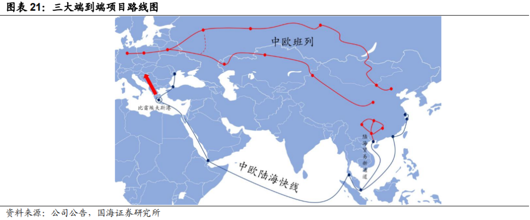 第一,打造中欧铁路班列、中欧陆海快线、西部贸易通道三类端到端项目,并且发展迅速。2021年上半年,三类项目同比增幅分别达到54%、79%、20%。