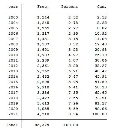 - 最终结果数据区间:2003-2021年