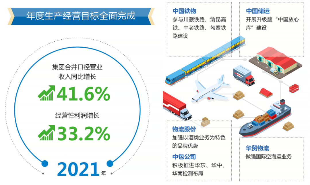 中国物流集团是我国唯一以综合物流作为主业的新央企,自成立起便具有行业内最为顶级的配置:占据仓储优势的中国物资储运集团;拥有全国多个大港口和全国将近40%的高速路运营权的招商局;提供强力铁运保障的中铁路;补齐海空运能力的中远海运和东方航空;以及国际物流业务领先、拥有全球网络的华贸物流。