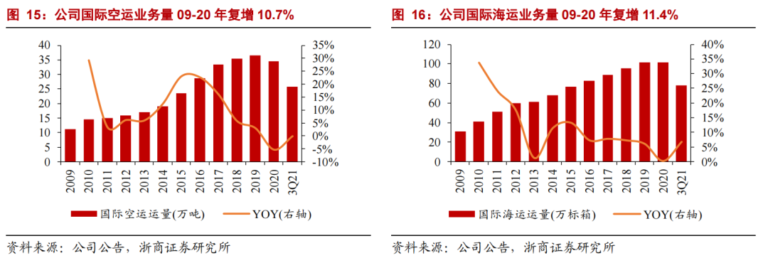 华贸物流国际空、海运业务量增长情况 图片来源:浙商证券