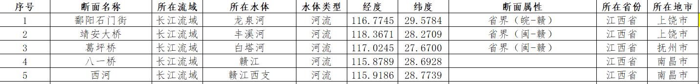 “十四五”江西省地表水水质国控断面坐标位置数据,共152个断面坐标,可配合全国地表水水质月报或个人研究使用。数据含断面名称、所在流域、所在水体、水体类型、经度、纬度、断面属性、所在省份、所在地市)。