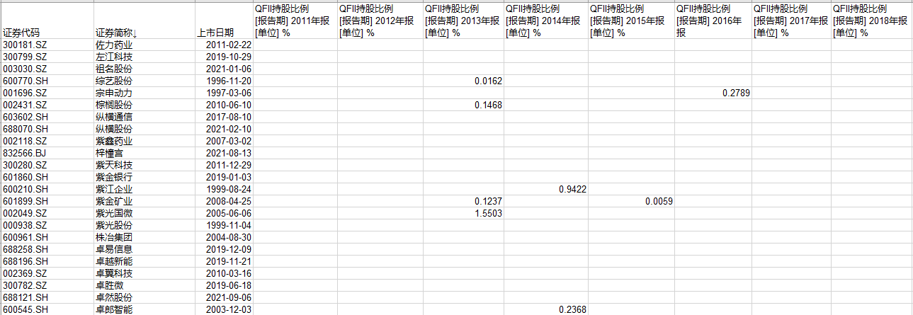 我国A股上市公司QFII持股比例2011-2021年,数据来源:Wind数据库,有需要的同学可用~