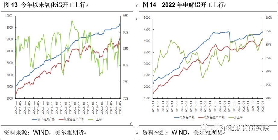2022年氧化铝计划投产1070万吨,目前已投产500万吨左右,如全部投产今年年底氧化铝在产产能在8700万吨左右,今年氧化铝对于烧碱的需求也是有一定支撑的。